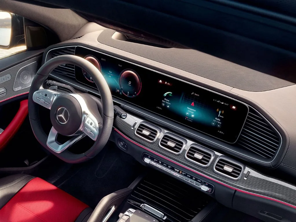 Im GLE Coupé Interieur erwartet Sie eine einzigartige Symbiose aus digitalen Anzeigen und charakteristischen Designelementen wie den SUV-typischen Haltegriffen in der Mittelkonsole die für einen markanten Offroad-Charakter sorgen.